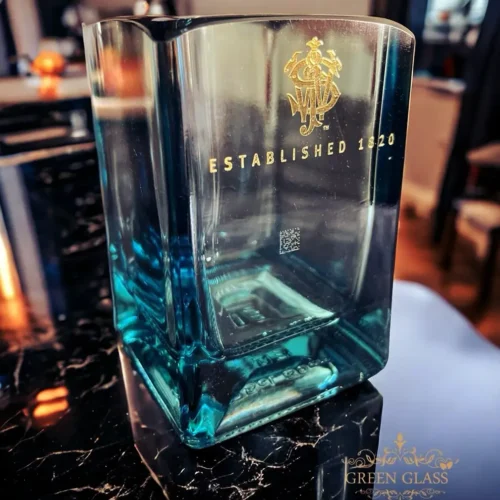 El cofre de la botella reciclada del whiskey Jack Daniel’s Honey es una joya entre los productos exclusivos de Green Glass. Mediante un corte artesanal de Lanchi, esta icónica botella de whisky se transforma en dos partes: una superior e inferior, unidas con precisión utilizando una bisagra integrada en el tope. Esta meticulosa técnica fusiona la parte superior, conocida como “pico”, con la inferior, creando así un elegante cofre.